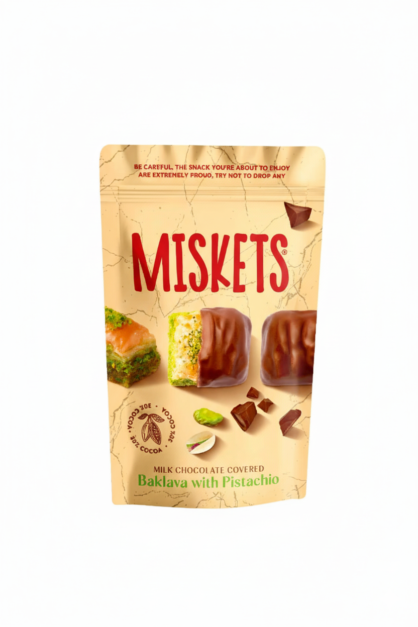 İçi Antep fıstığı dolgulu ve çikolata kaplamalı olarak hazırlanan Çıtır Baklava, çıtır baklava dokusu ile fıstığın doğal aroması ve çikolatanın yoğun lezzetini bir araya getirir. Her lokmada dengeli bir tat ve keyifli bir çikolata deneyimi sunar.