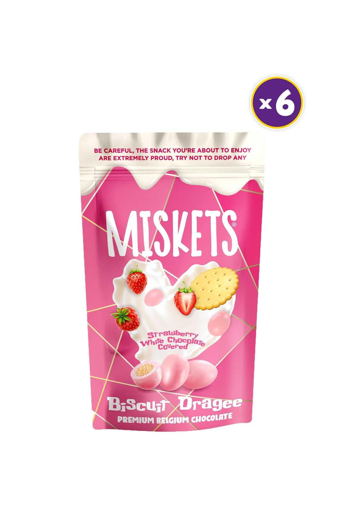 Beyaz Çikolata Kaplamalı Çilek Bisküvi Draje 80 GR x 6 Adet